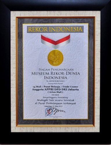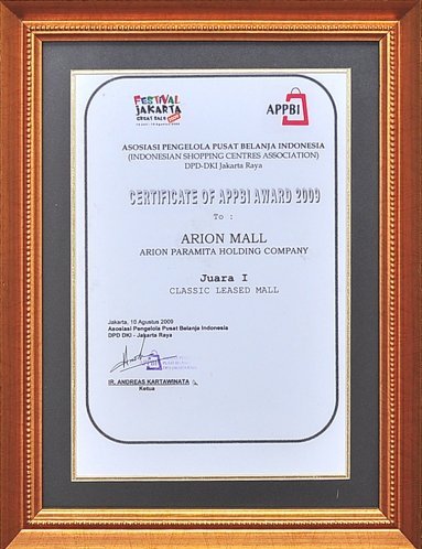 Penghargaan Arion Mall Rekor MURI - Midnight Sale 2013 Rekor MURI - Donor Darah 2012 Rekor MURI - Penanaman Pohon Trembesi 2011 Penghargaan APPBI 2009 123 Arion Swiss-Belhotel Bandung TripAdvisor Excellence Winner 2013 TripAdvisor Excellence 2012 1 Arion Swiss-Belhotel Kemang Arion Swiss-Belhotel Kemang Popular Award TripAdvisor Excellence 2012 1 Kelly Tour & Travel IATA Kelly Tour & Travel 1 Arion Paramita Penghargaan Walikota Jakarta Timur 2014 Penghargaan Gubernur DKI 2013 1